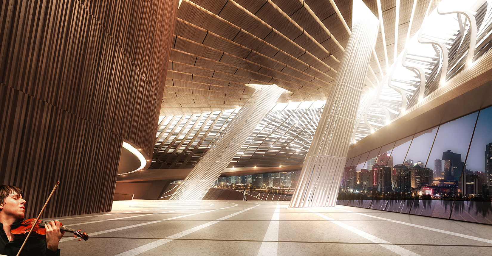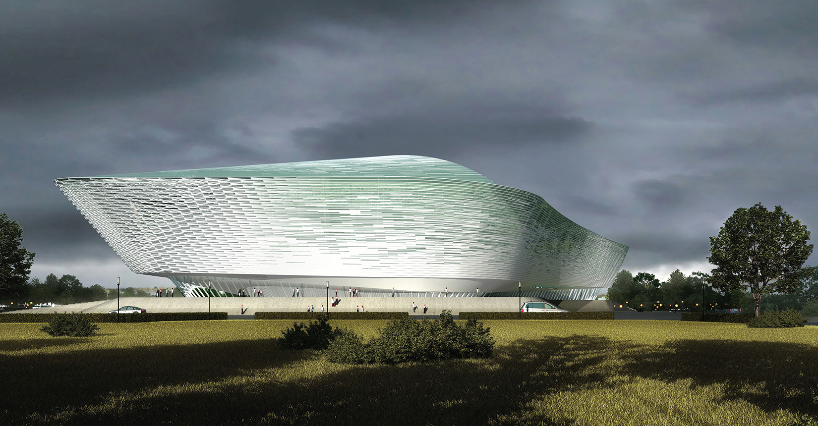 中國傳統(tǒng)文化“天人合一”的自然觀與社會觀,以“山、水”的自然美來再現(xiàn)“智者樂山、仁者樂水”的儒家美學(xué)觀。建筑設(shè)計中將中軸景觀河畔景觀設(shè)計與建筑設(shè)計相融合,以此與整個大學(xué)城的城市景觀相融合,達到建筑與景觀一體化設(shè)計的結(jié)果,提高了整個園區(qū)的品質(zhì)與園區(qū)文化。