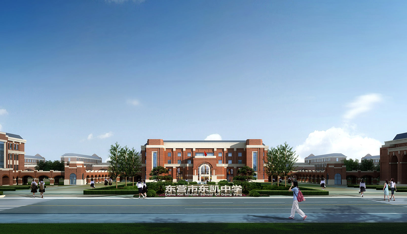 學(xué)校規(guī)劃設(shè)計(jì)中采用了中國(guó)傳統(tǒng)書院式軸線布局,將各個(gè)功能單體通過特有的風(fēng)雨廊聯(lián)系起來,形成了一個(gè)完整的有機(jī)整體,避免了傳統(tǒng)學(xué)校布局呆板、流線冗長(zhǎng)的缺陷。風(fēng)格方面采用了古典學(xué)院派的建筑風(fēng)格,著力塑造厚重的學(xué)院氣氛,力求打造百年名校的文化理念。綠色建筑方面,通過設(shè)計(jì)中利用被動(dòng)式的節(jié)能技術(shù)策略,力求打造省內(nèi)乃至國(guó)內(nèi)領(lǐng)先的綠色二星級(jí)校園建筑。