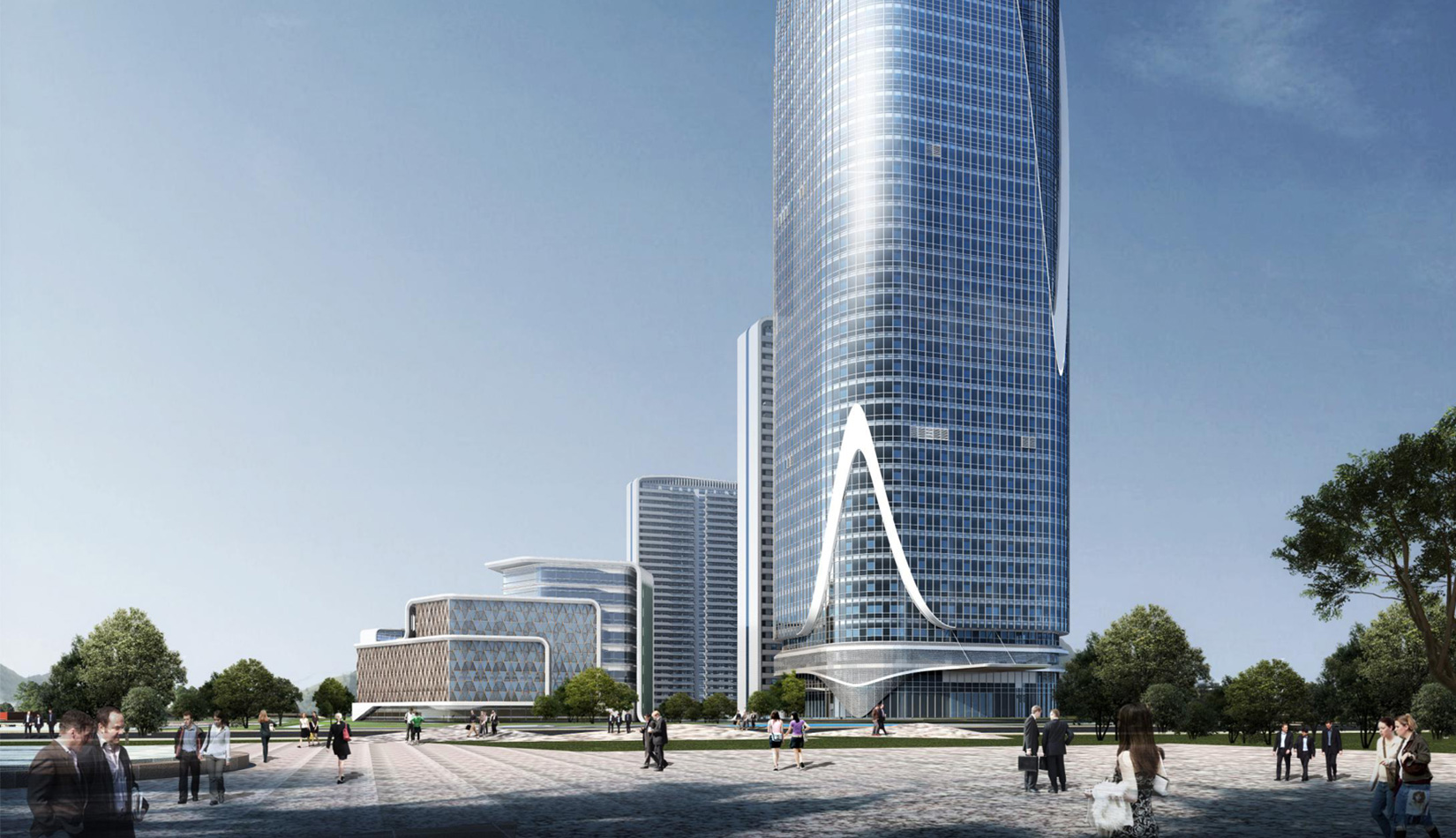 院士港二期1#樓為超高層工程技術中心,建筑采用現代風格立面,以玻璃幕墻為主,利用豎向線條體現高山流水設計理念。